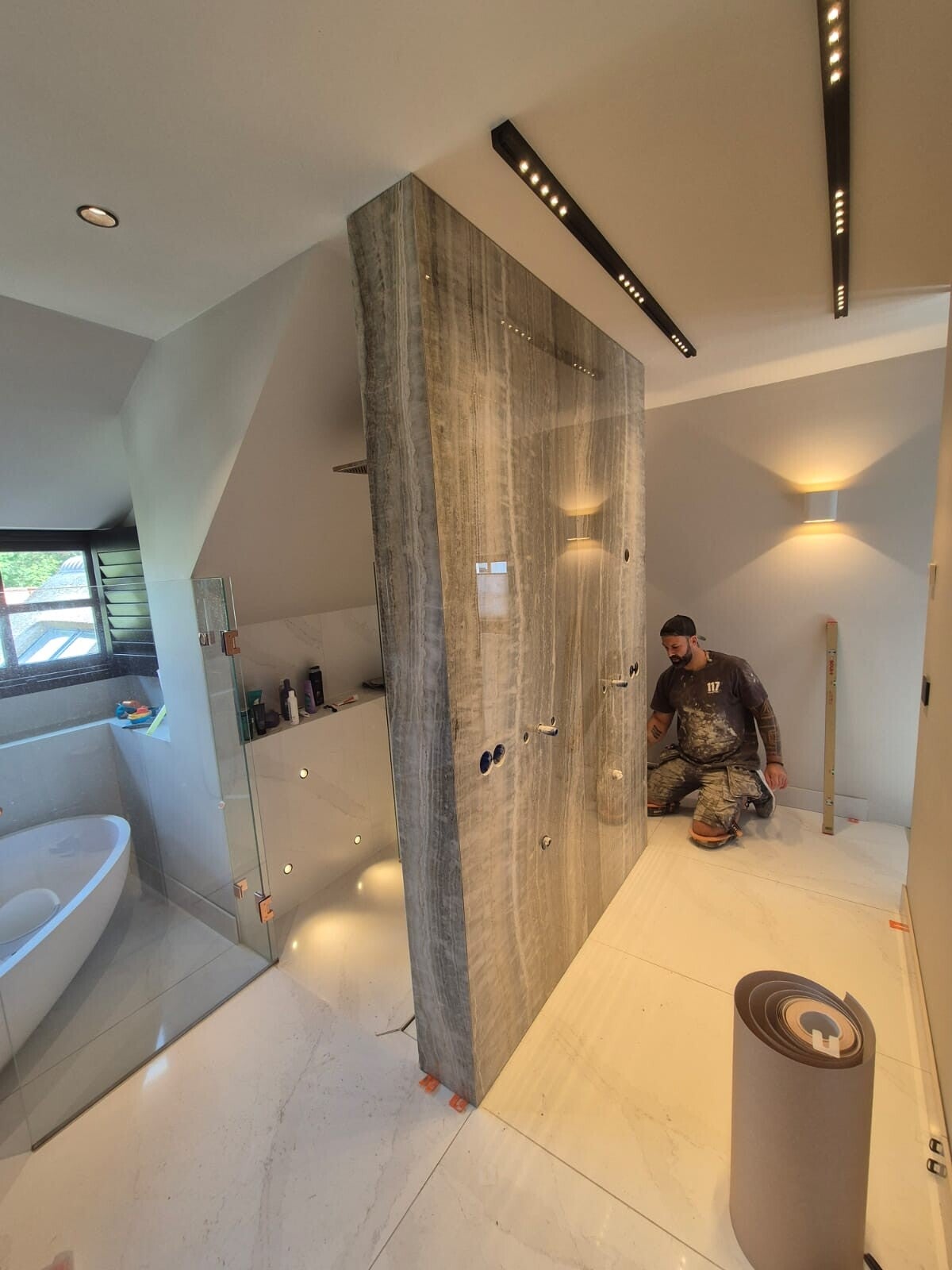 Ervaar de transformatie van uw badkamer met de expertise van 117 Tegelzetters. Wij denken graag met u mee, van ontwerp tot oplevering, om een ruimte te creëren die zowel functioneel als een oase van rust is. Met hoogwaardige materialen en precieze plaatsing garanderen wij een resultaat dat jarenlang meegaat en waar u elke dag van geniet.